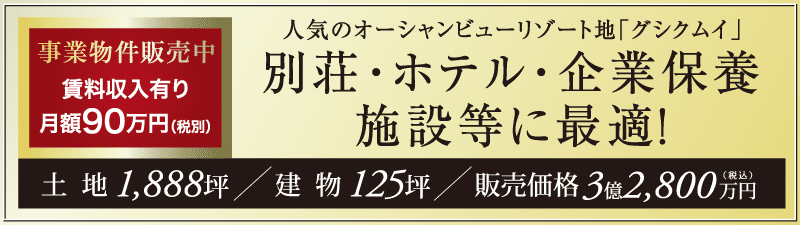 今回の販売対象物件は、本部半島の強固な地盤と海抜約100mからの大パノラマ。恵まれた理想的な環境はホリスティック医療施設やオールスィートヴィラなどプライベート性を活かした富裕層向け施設に申し分のない立地です。